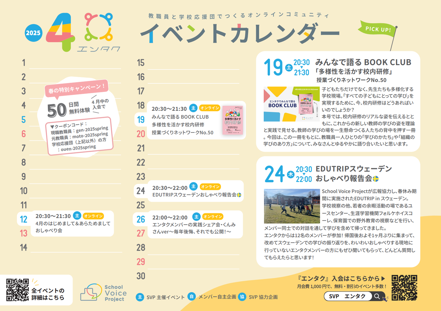 さて!事務局もバタバタで遅れてしまいましたが...4月のイベントカレンダーができましたので共有します。ぜひご覧ください^^