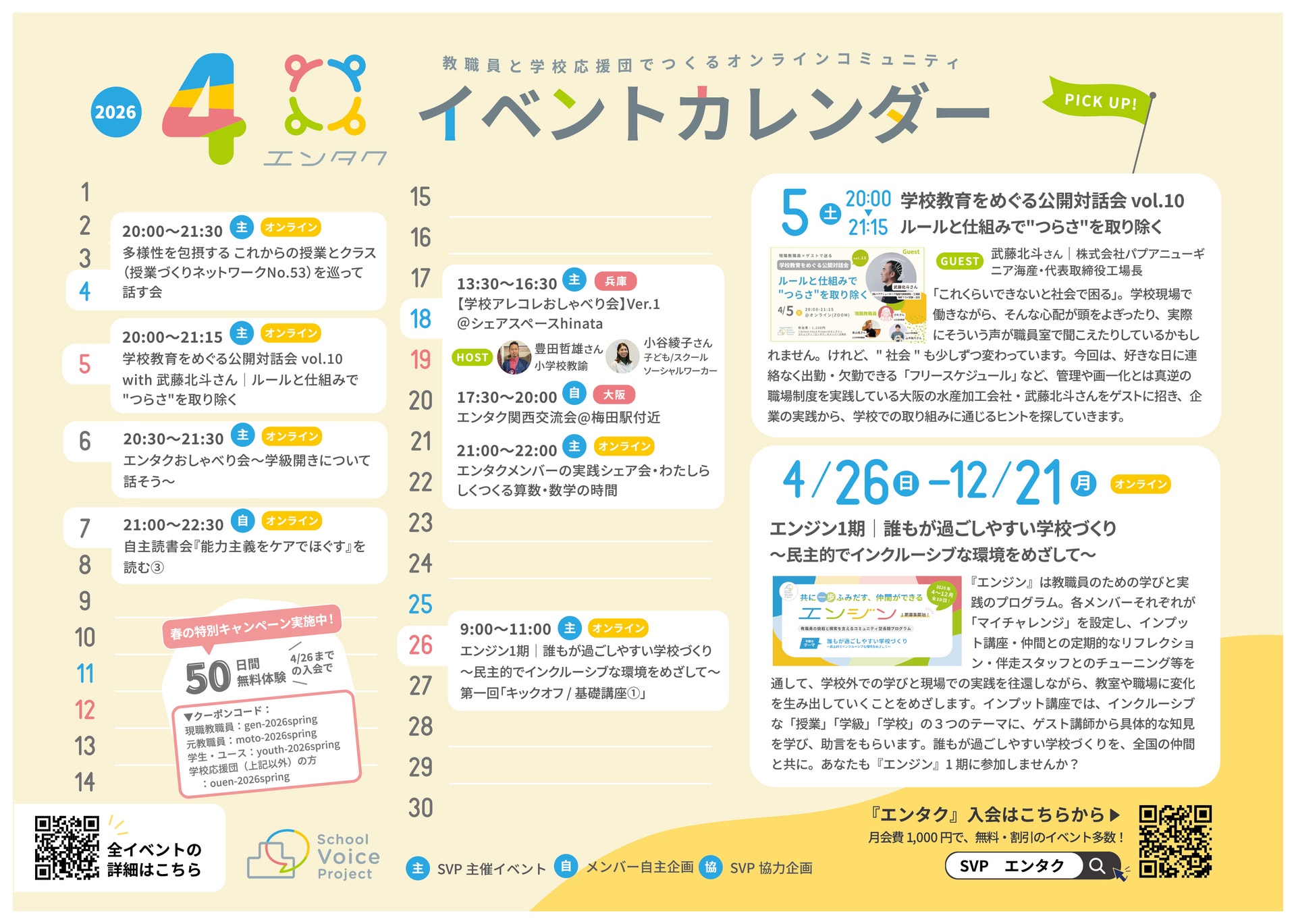 さて、4月のイベントカレンダーができましたので共有します!
