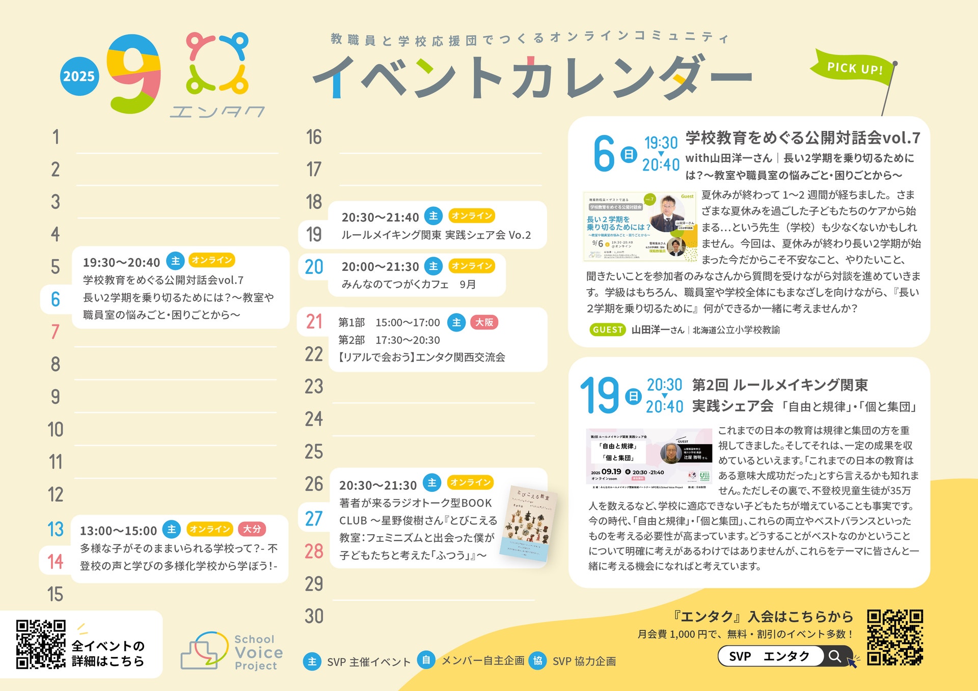 さて、9月のイベントカレンダーができましたので共有いたします。