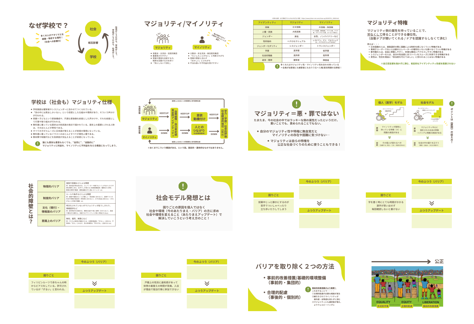 ● 多様性が生かされる学校・社会をつくるにあたっての共通認識・共通理解を構築するために、「知識・情報のインプット」を大切にします。