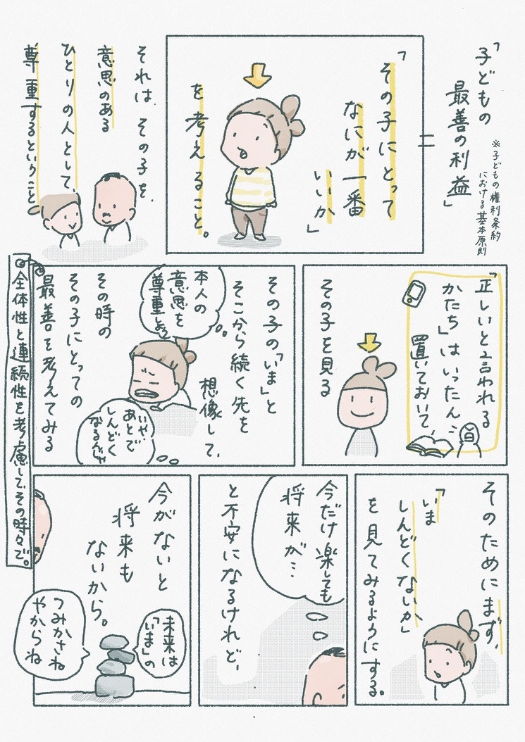 今回は、下記のマンガのような日常のちょっとした場面から『「その子にとっていちばん良いこと」ってなんだろう?』ということを対話していきます。