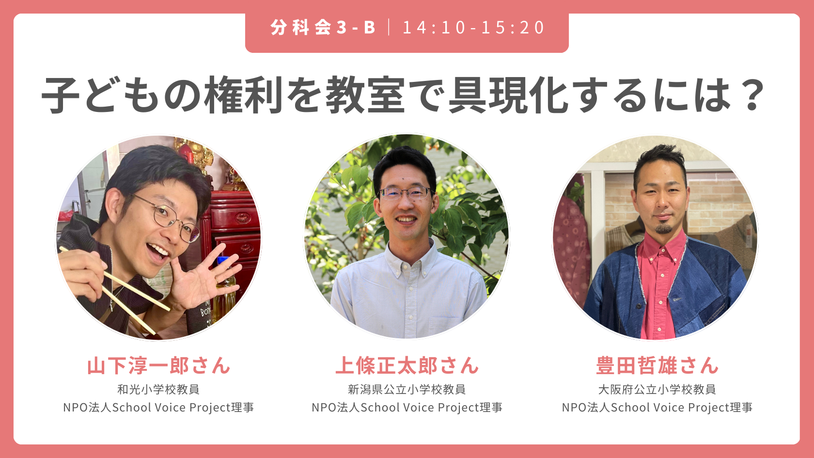 学校教育の土台に「子どもの権利」が置かれてほしいと、School Voice Projectは願っています。子どもの権利を意識したクラスづくりをしている理事3人のざっくばらんなおしゃべりを聞きながら、自分の教室を振り返り、できることを一緒に考えませんか?